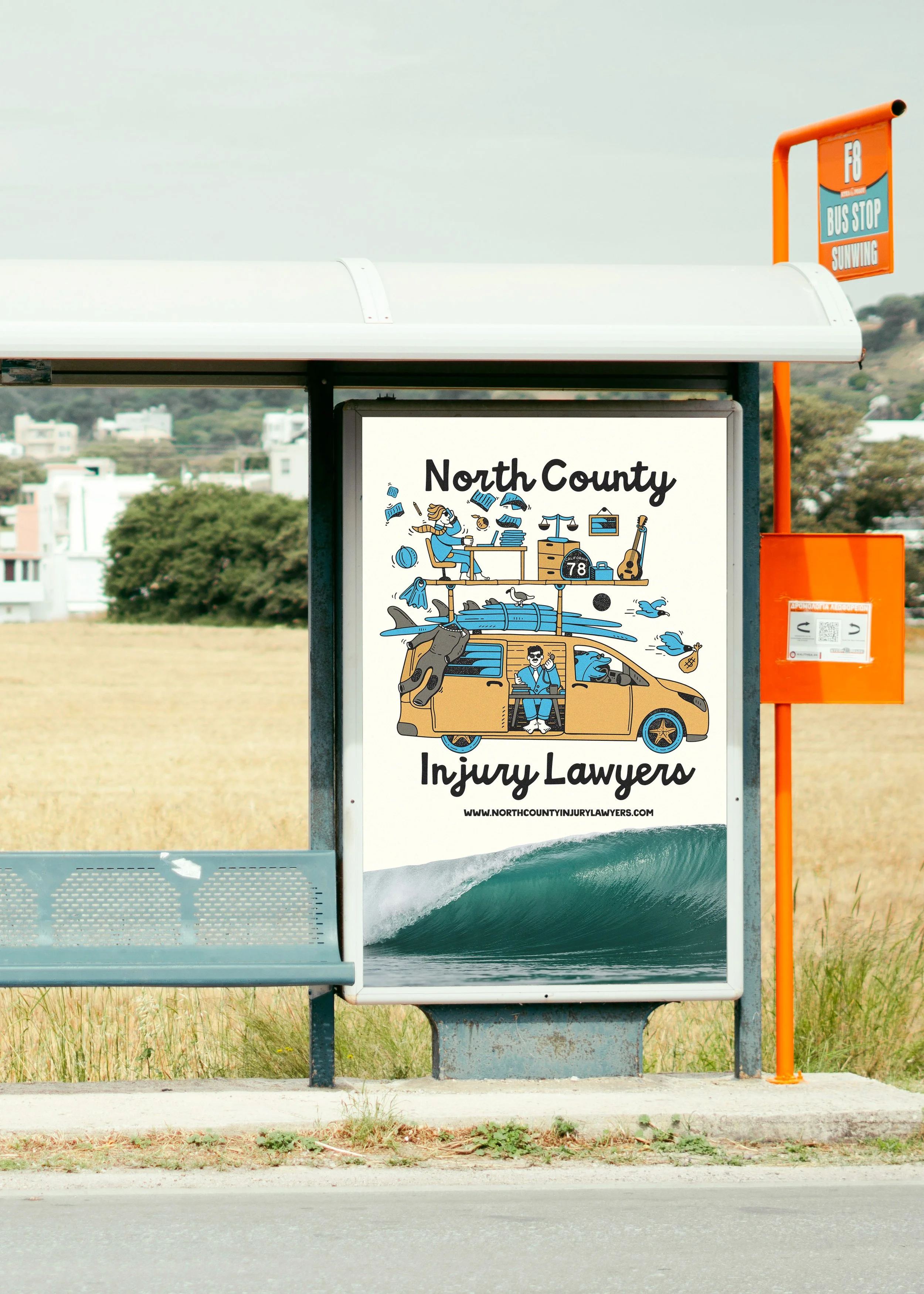 The goal was to shy away from the traditional law firm graphics you often see on billboards and instead, create something approachable and fun that captures the vibrant beach vibe of North County SD.